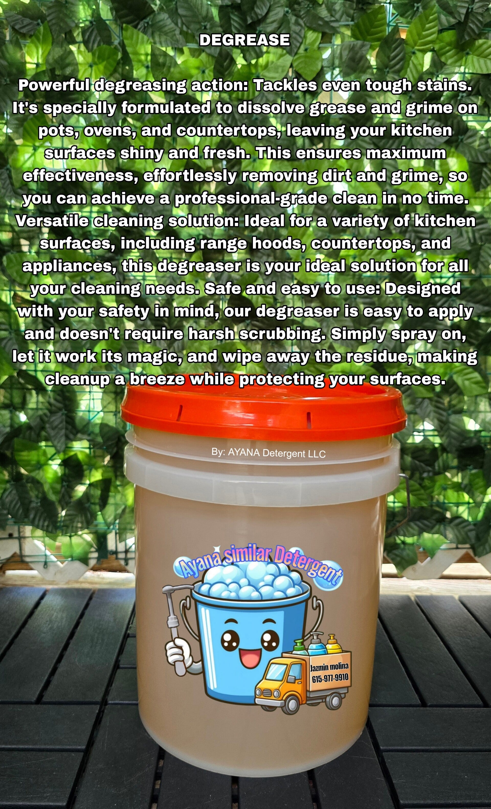 Potente acción desengrasante: Combate incluso las manchas difíciles. Está especialmente formulado para disolver la grasa y la suciedad en ollas, hornos y encimeras, dejando las superficies de su cocina brillantes y frescas. Esto garantiza la máxima eficacia, eliminando la suciedad sin esfuerzo, para que pueda lograr una limpieza de calidad profesional en un instante. Solución de limpieza versátil: Ideal para una variedad de superficies de cocina, incluyendo campanas extractoras, encimeras y electrodomésticos. Este desengrasante es la solución ideal para todas sus necesidades de limpieza. Seguro y fácil de usar: Diseñado pensando en su seguridad, nuestro desengrasante es fácil de aplicar y no requiere frotar con fuerza. Simplemente rocíe, deje que actúe y limpie los residuos, facilitando la limpieza a la vez que protege sus superficies.